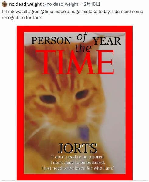 “我觉得《时代杂志》今天犯了个大错误。他们应该把Jorts放上去。”