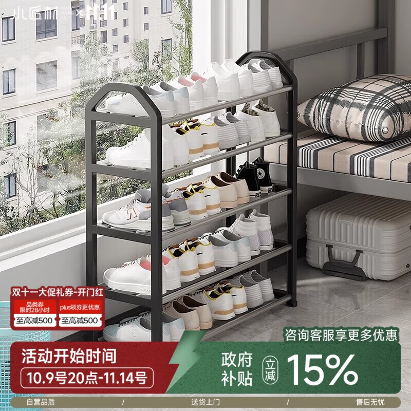 小匠材鞋架简易家用门口宿舍室内多层收纳出租屋鞋架子黑色4层56cm