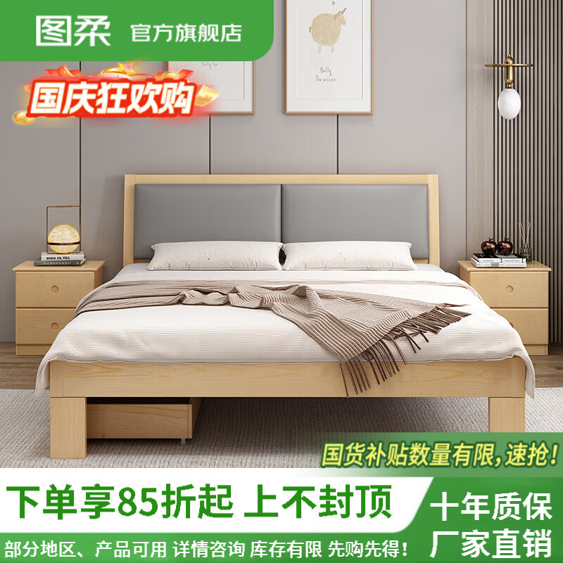 图柔实木床双人床软包靠背单人床出租房床床垫组合卧床 实木床+软靠+5cm椰棕床垫+床头柜*2 1.2*2米床40cm高