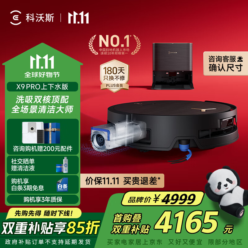 科沃斯X9 PRO扫地机器人恒压滚筒洗地机器人扫拖一体自动清洗智能家用全自动上下水版【国家补贴】