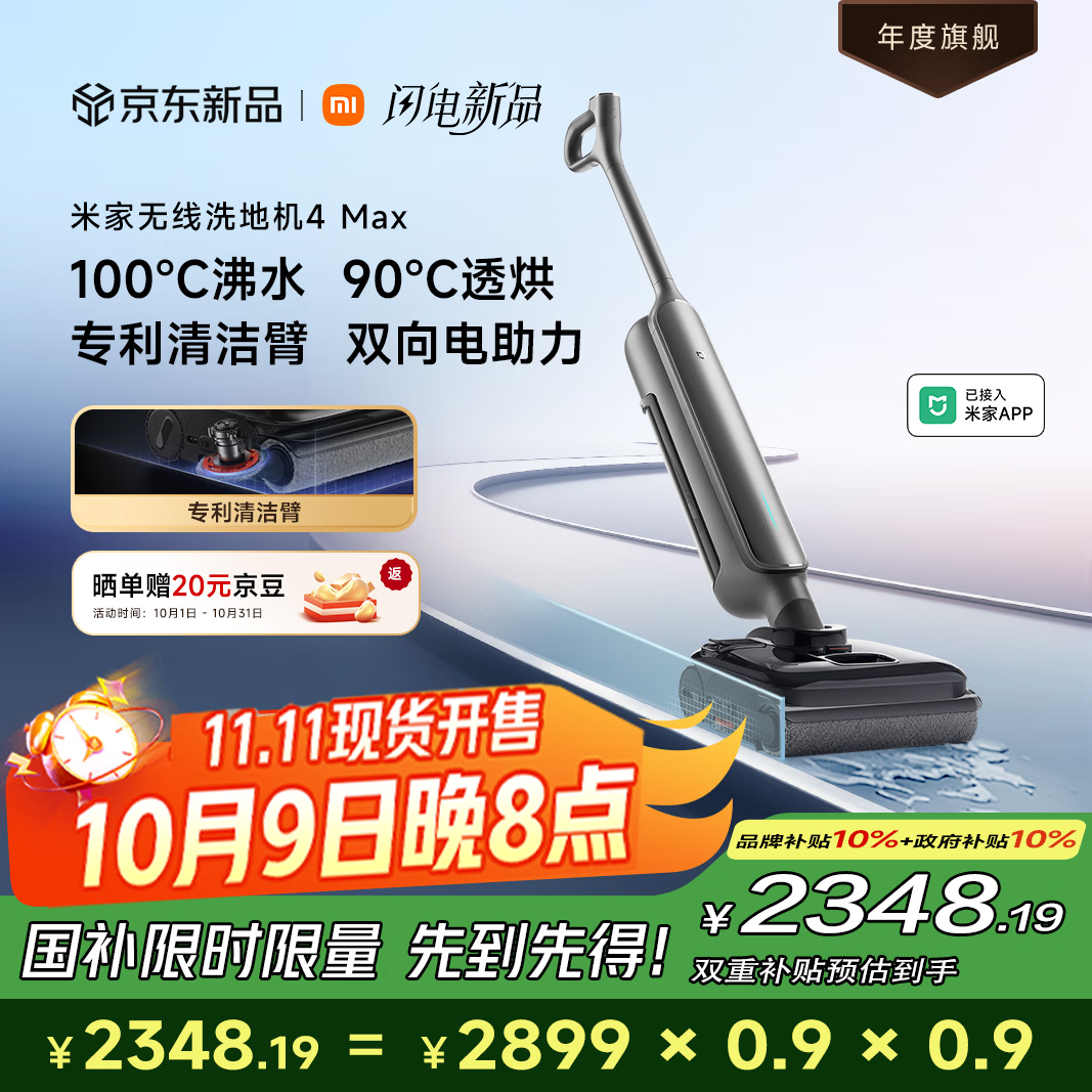 米家【发布会新品】小米洗地机4Max 创新智能0贴边 23kPa吸力双向助力扫地吸拖一体躺平防缠洗地机