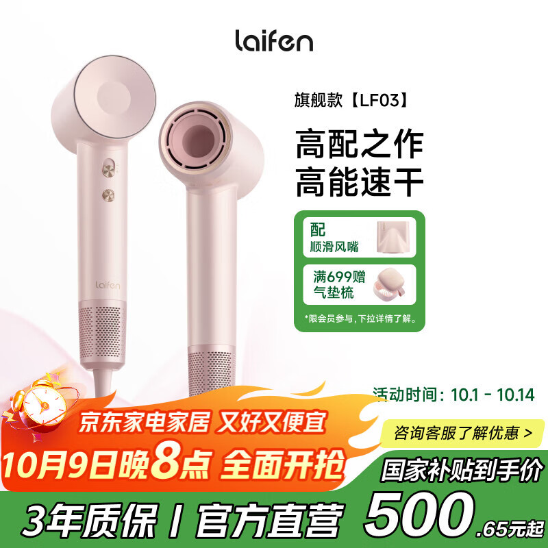 徕芬Laifen高速吹风机 速干家用电吹风 莱芬负离子护发吹风筒无叶吹风机 生日礼物 国家补贴 LF03金粉