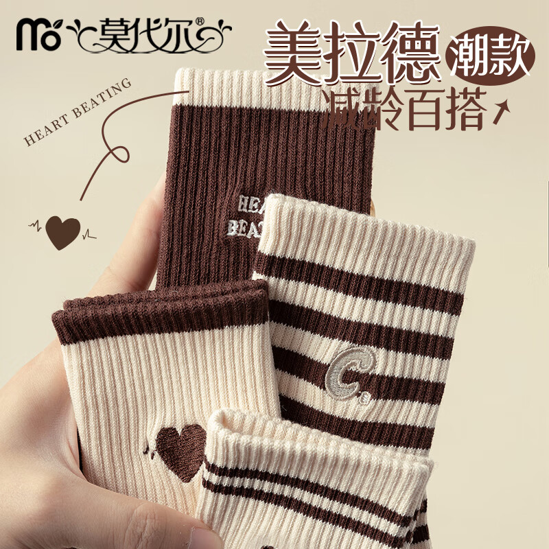 莫代尔女士袜子女春秋季中筒袜透气学生潮流美拉德风复古ins条纹长筒袜 混色 7双 均码