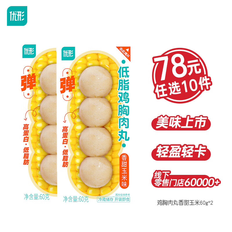 优形(ishape)【京东速发任选10件】沙拉鸡胸肉开袋即食鸡排丸子鸡肉肠轻食代餐 【2袋】丸子玉米味