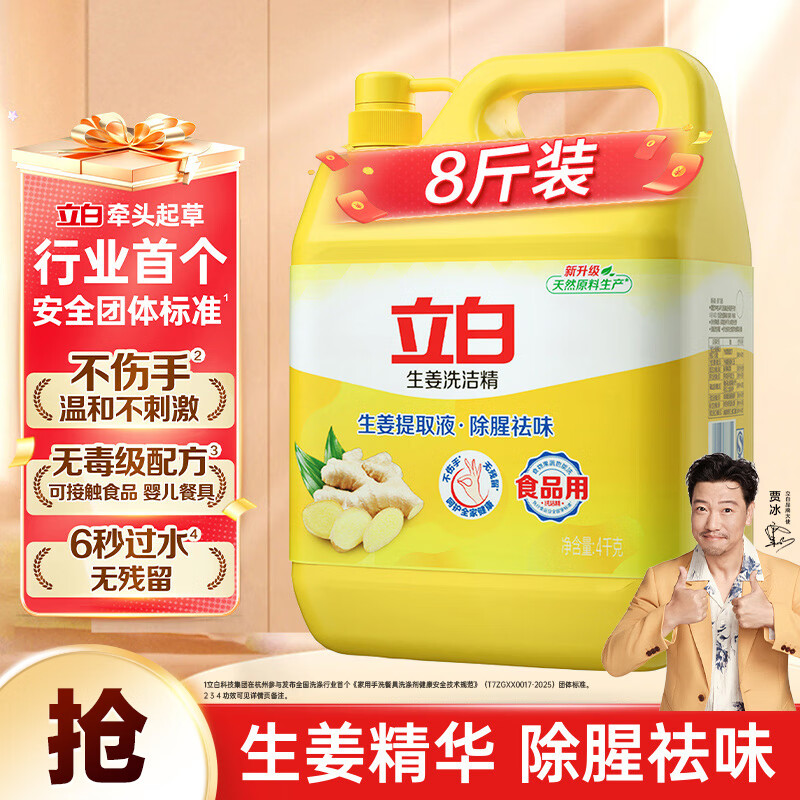立白生姜洗洁精大桶4kg除味去油去腥餐具净强效去油餐馆用洗涤灵 A类