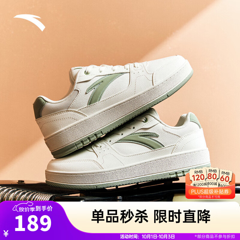 安踏(ANTA)元年2|板鞋男鞋运动休闲软底增高复古潮流运动鞋男小白鞋休闲板鞋 【女款】象牙白/瓷釉绿-7 35.5 (女5码)