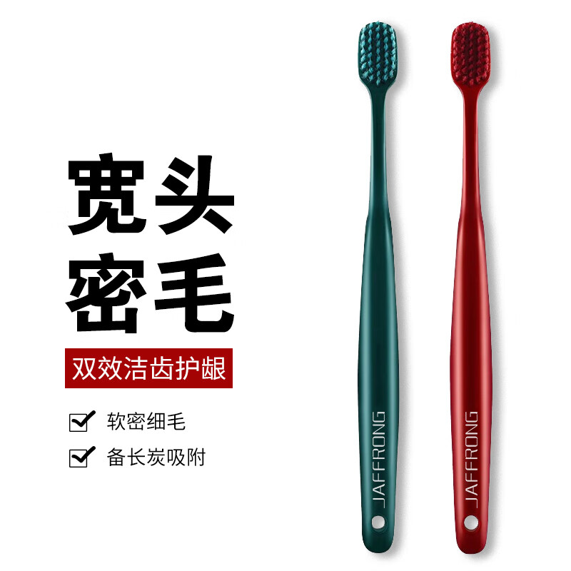 洁芙朗(JAFFRONG)宽头牙刷情侣款 深层清洁护龈纤细软毛口腔护理牙刷男女2支装