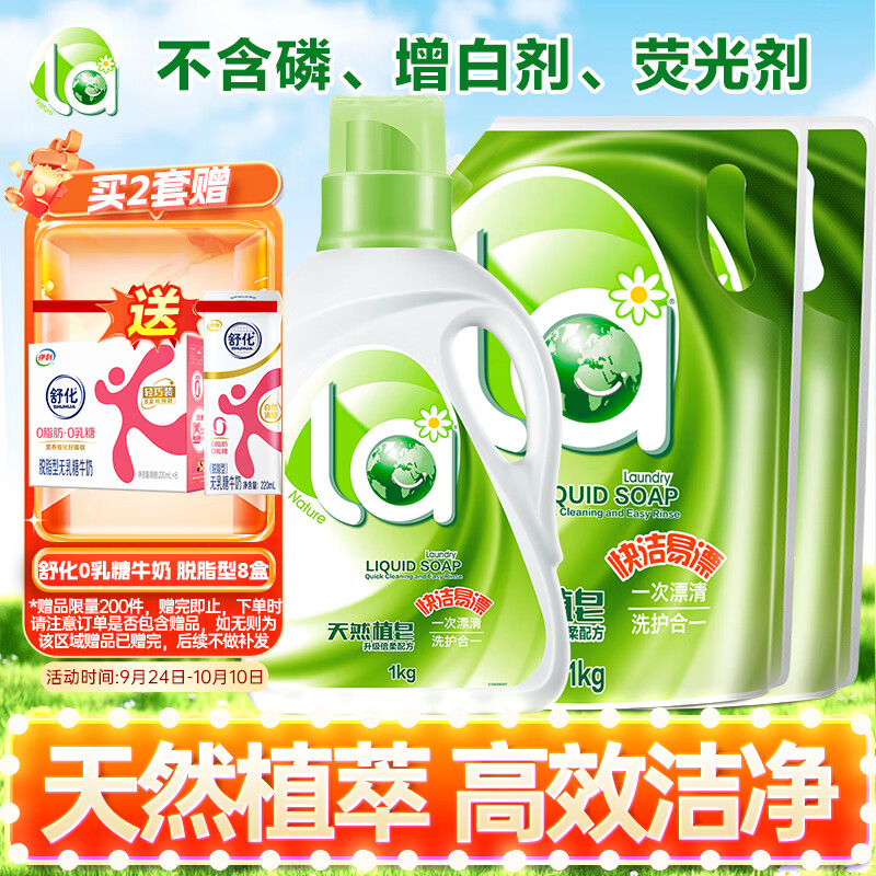 妈妈壹选天然植皂洗衣液清香型6斤组合装(瓶1kg+补充袋装1kg*2)洁净污渍