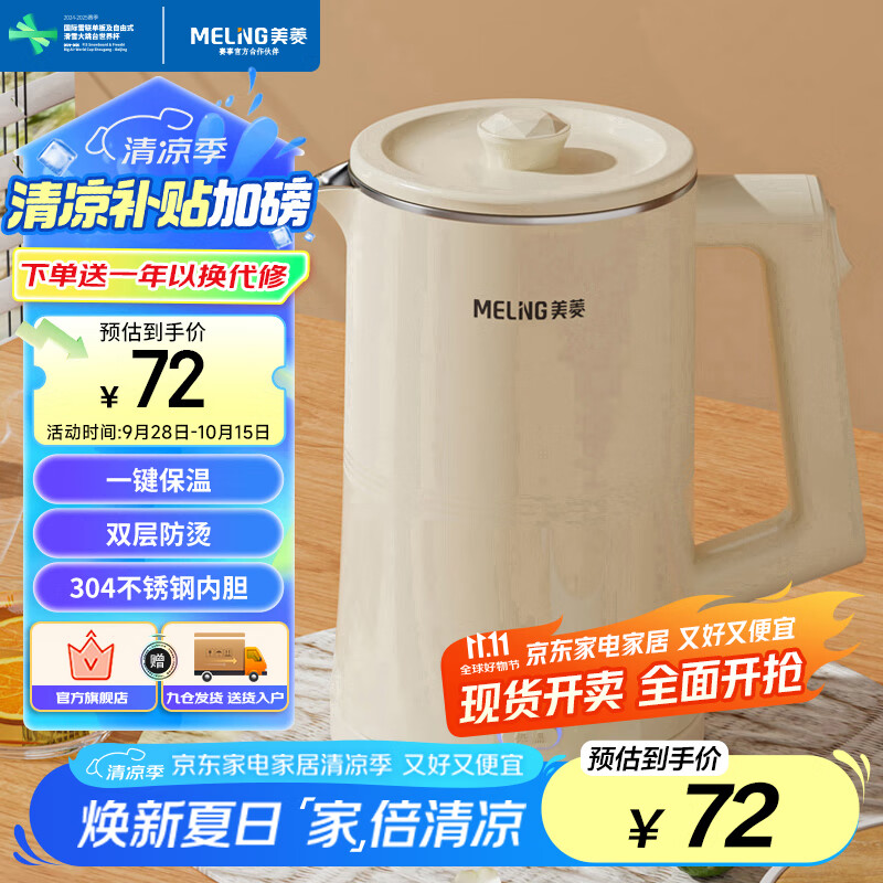 美菱(MeiLing)烧水壶电水壶热水壶电热水壶家用保温1.7L大容量防烫电热水壶开水壶电热水瓶MH-A1860B