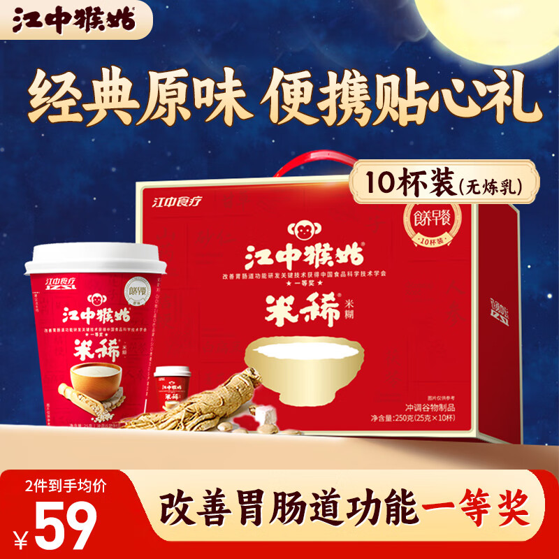 江中猴姑米稀原味米糊杯装速食营养早餐代餐养脾胃10杯装中秋送礼250g