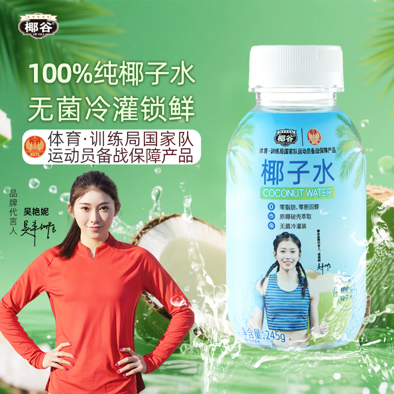 椰谷(YEGU)100%纯椰子水245g*15瓶整箱天然电解质健身椰青水0脂0胆固醇饮品