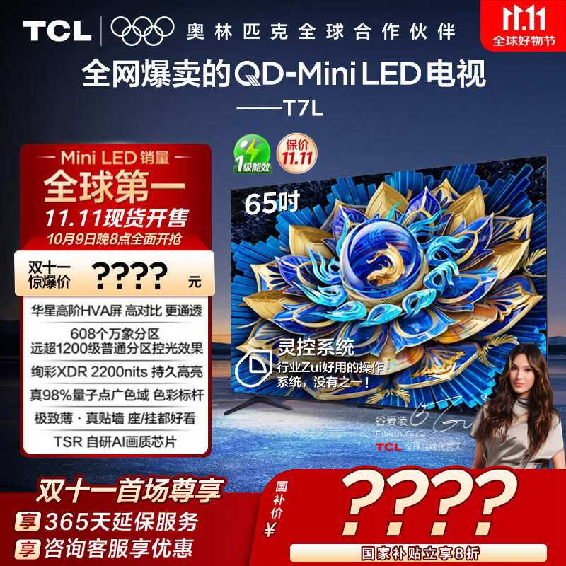 TCL电视 65T7L 65英寸 QD-Mini LED 华星高阶HVA屏 万象分区 绚彩XDR2200nits 超薄 国家补贴