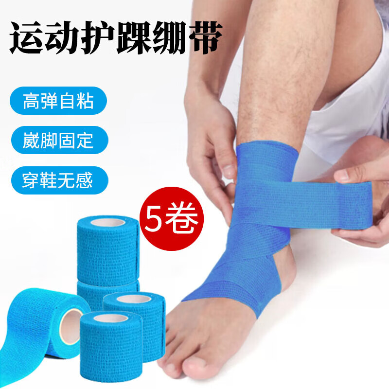 勋狸粑自粘运动绷带弹性足球篮球打脚护脚踝护腕防崴脚专用弹力绷带 蓝色弹力绷带 5.0cm * 4.5m【5个装】