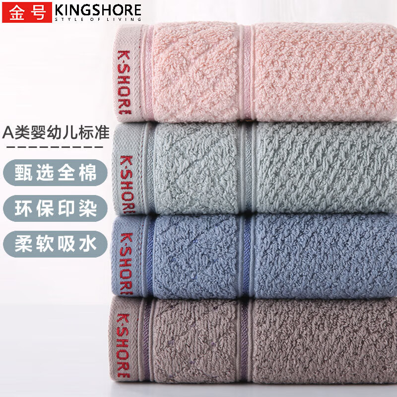 金号毛巾家纺 新疆棉提缎素色纯棉柔软吸水毛巾 4条装 60*29cm