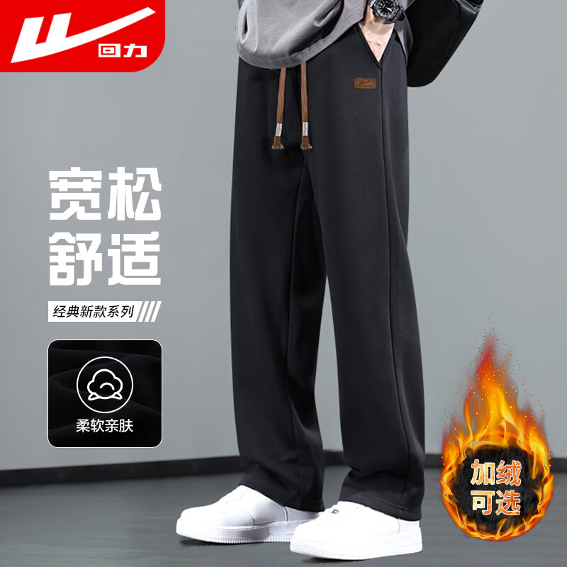 回力(Warrior)裤子男冬季加厚休闲裤男宽松保暖加绒裤男直筒阔腿男裤百搭裤子