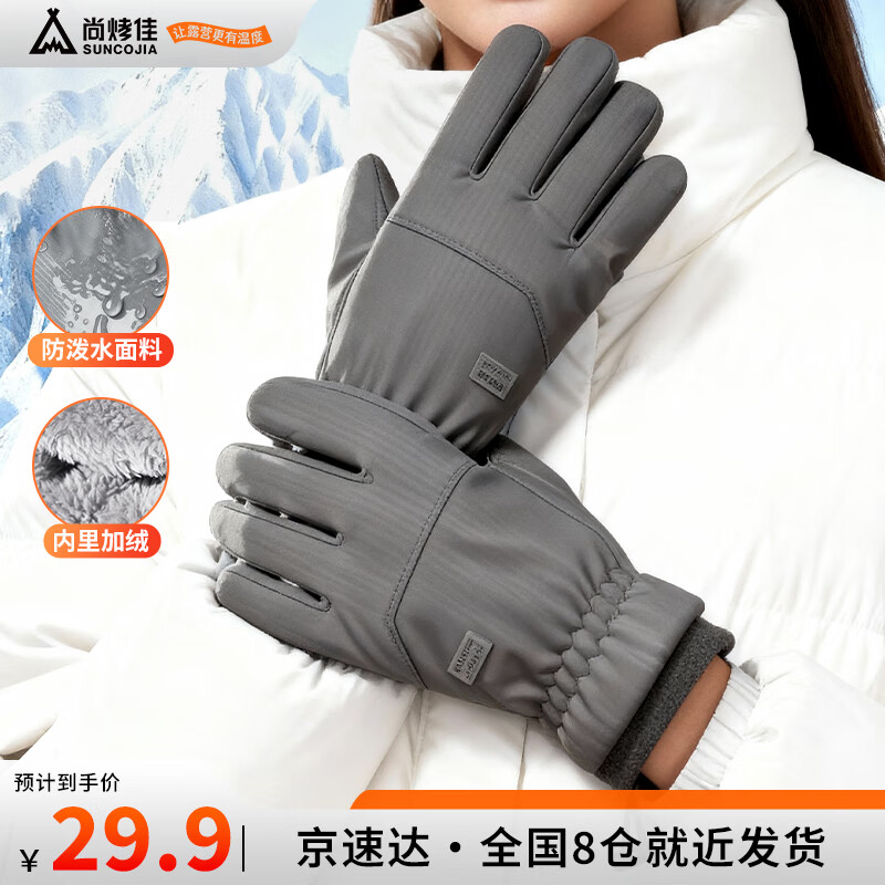 尚烤佳(Suncojia)骑行手套男女秋冬季防水山地车保暖户外运动登山防滑抗震可触屏
