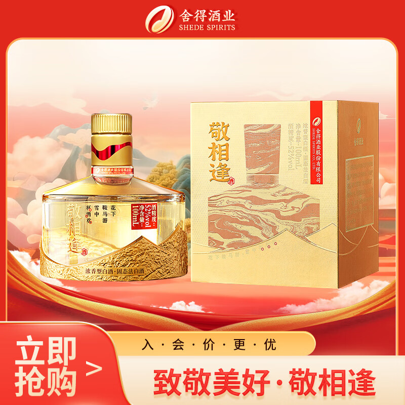 舍得敬相逢(金色)浓香型白酒 52度100ml单瓶 热门商品推荐