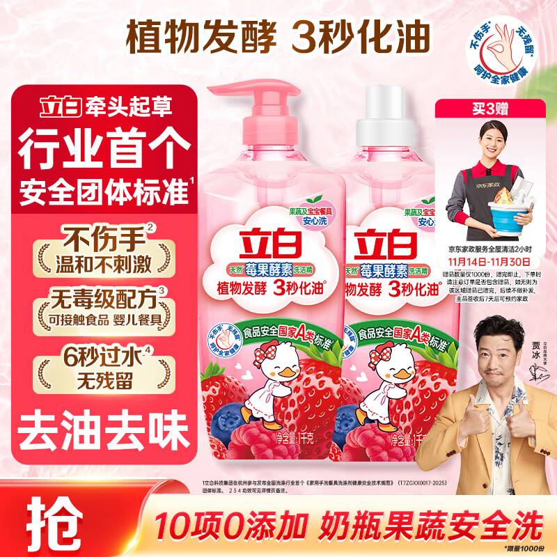 立白天然莓果酵素洗洁精1kg*2可洗奶瓶果蔬A类洗洁剂洗涤灵家庭清洁
