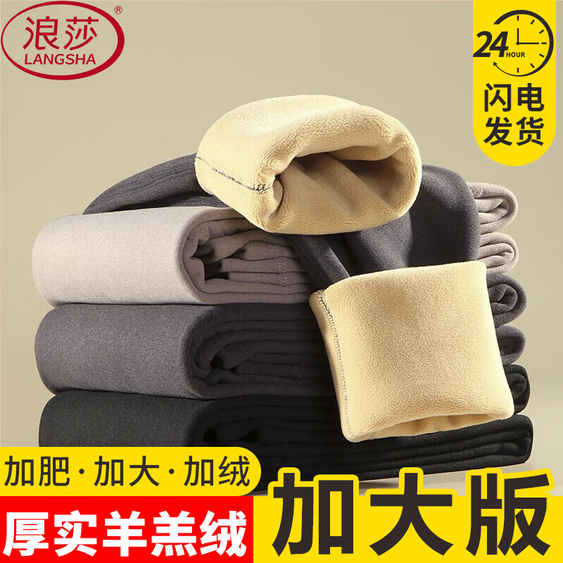 浪莎加大码男士保暖裤新品防风羊毛护膝棉裤加肥佬加绒加厚线裤
