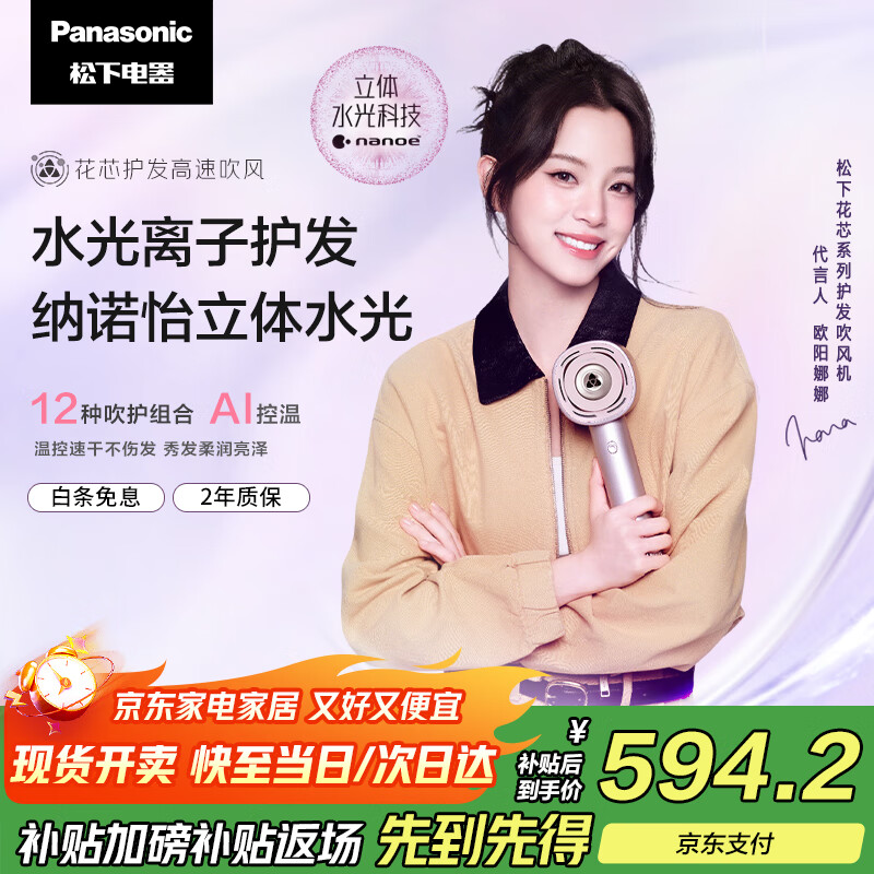 松下(Panasonic)【欧阳娜娜同款】花芯吹风机家用高速电吹风不伤发纳诺怡水光离子护发送女友礼物国家补贴EH-JNW6A