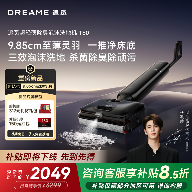 追觅洗地机T60【9.85cm超薄机身 24000pa飓风吸力】洗拖吸拖一体机自动清洗家用拖地扫地机国家补贴
