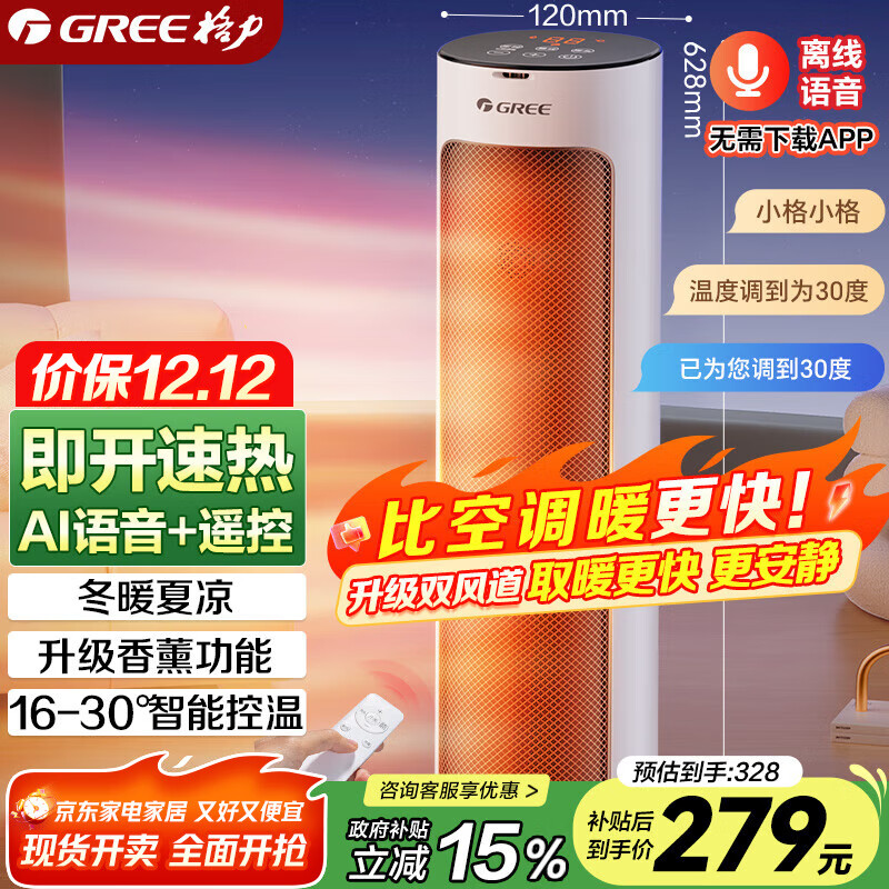 格力(GREE)【AI语音控制+遥控】取暖器家用暖风机电暖器摇头电暖气立式取暖气小太阳轻音电暖风NFTB-X6020BV