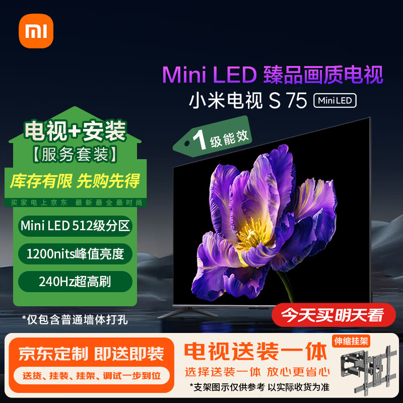 小米(MI)电视包安装版(伸缩挂架送装一体) S75 Mini LED 75英寸 512分区 4GB+64GB 一级能效家电