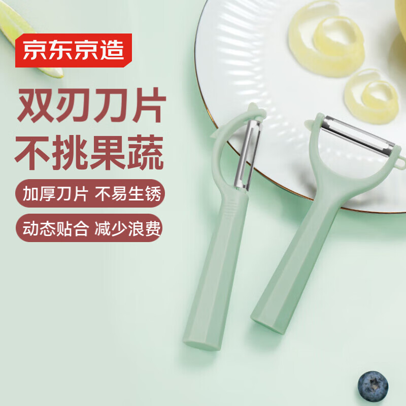 京东京造 青颜水果刀 削刮皮家用不锈钢多功能【P+Y型】刮刨2件套